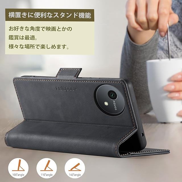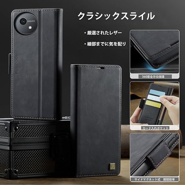 AQUOS wish5 ケース 手帳型 AQUOS wish5 SH-52F 手帳型ケース シャープ アクオス ウッシュ5 ケース手帳 スマホケース 携帯ケース 携帯カバー スマホカバー RFID磁気防止 サイドマグネット式 カード収納 スタンド機能 耐摩擦 全面保護 (AQUOS WISH4 SH-52F 対応) ブラック