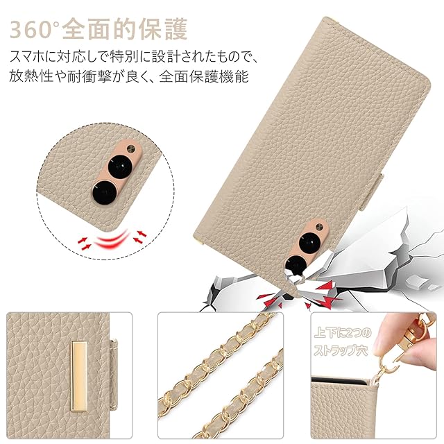 【人気の理由】❶付属クロスボディチェーン。全長120 cm (金具含む)。軽量&快適:他の鉄チェーンよりもはるかに軽い、柔らかい革はあなたの肩に快適です。❷肩掛けケースになれ。女性ぽっいおしゃれなデザイン、質感、縫製も高級感漂う仕様でおしゃれで,スタイリッシュな外観で、金具の装飾が美しさと上品さを漂わせてます。重い荷物を持っている時、子供を連れて外出する時もスマホを紛失すること心配なく両手が解放されます。(ケースだけが必要な場合、チェーンが取り外し可能です)❸サイドマグネット式なので、磁石はケースの側面にあり、カード面に直接接しないので、磁気カード類が壊れる心配がありません。