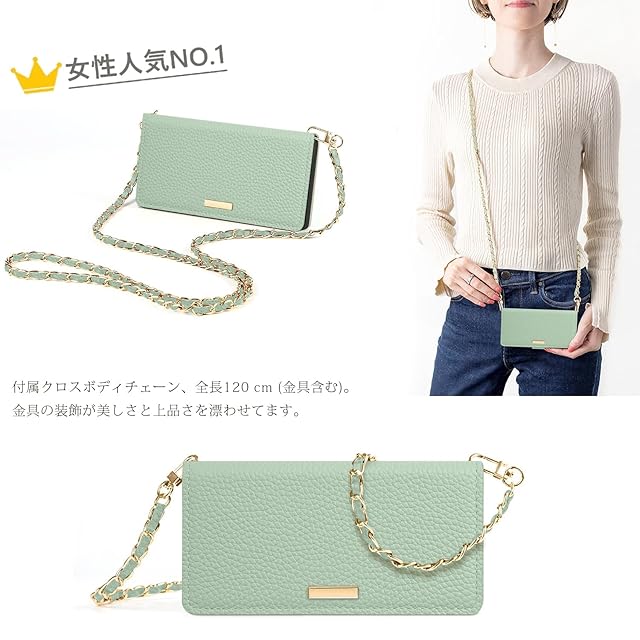 【人気の理由】❶付属クロスボディチェーン。全長120 cm (金具含む)。軽量&快適:他の鉄チェーンよりもはるかに軽い、柔らかい革はあなたの肩に快適です。❷肩掛けケースになれ。女性ぽっいおしゃれなデザイン、質感、縫製も高級感漂う仕様でおしゃれで,スタイリッシュな外観で、金具の装飾が美しさと上品さを漂わせてます。重い荷物を持っている時、子供を連れて外出する時もスマホを紛失すること心配なく両手が解放されます。(ケースだけが必要な場合、チェーンが取り外し可能です)❸サイドマグネット式なので、磁石はケースの側面にあり、カード面に直接接しないので、磁気カード類が壊れる心配がありません。