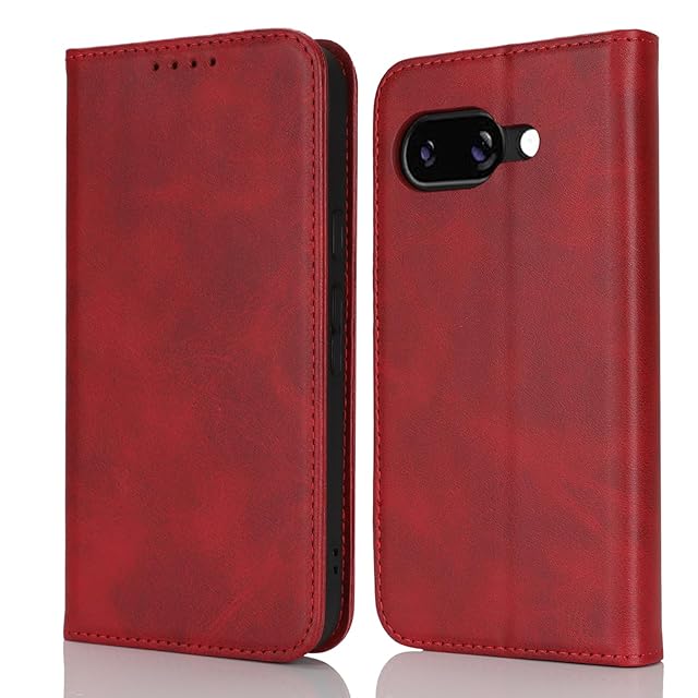 【Hamany】 pixel 9a ケース 手帳型 google pixel 9a ケース 耐衝撃 カード収納 内蔵マグネット ピクセル9a ケース 横置きスタンド機能 耐摩擦 レザー カバー-ヴィンテージレッド