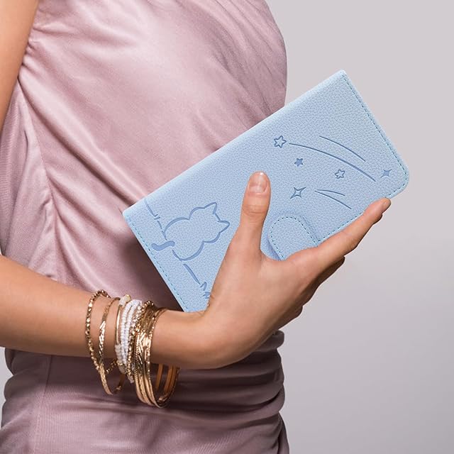 Rosbtib AQUOS sense4 ケース 手帳型 アクオスセンス4 ケース 流れ星子猫 aquos sense5g ケース 可愛い 猫柄 SH-53A SHG03 SH-41A ケース 耐衝撃 Sense4 lite スマホケース オシャレ 軽量 耐久性 スタンド機能 カード収納 PUレザー マグネット 着脱しやすい Sense4 basic カバー 5.8インチ対応(ブルー)