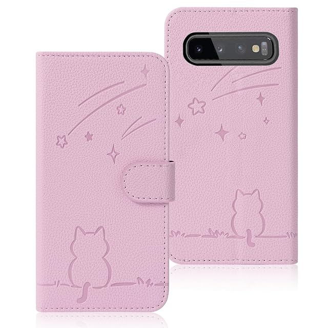 Rosbtib Galaxy s10 SC-03L ケース 手帳型 ギャラクシーs10 ケース 手帳型 流れ星子猫 SCV41 ケース 可愛い 猫柄 ねこ SC03L カバー 耐衝撃 Samsung Galaxy S10 スマホケース オシャレ 軽量 耐久性 スタンド機能 カード収納 PUレザー 内蔵マグネット 着脱しやすい ギャラクシー s10ケース カバー 6.1インチ対応(ピンク)