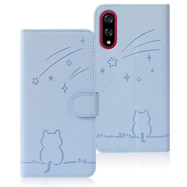 商品名:Rosbtib BASIO active3 ケース 手帳型 流れ星子猫 ベイシオアクティブ3 ケース 手帳型 可愛い 猫柄 ねこ 耐衝撃 UQ mobile au対応 basio active3 KYG04 手帳型ケース オシャレ 軽量 耐久性 basioactive3 スマホケース スタンド機能 カード収納 PUレザー 内蔵マグネット 着脱しやすい 6.1インチ対応(ブルー)