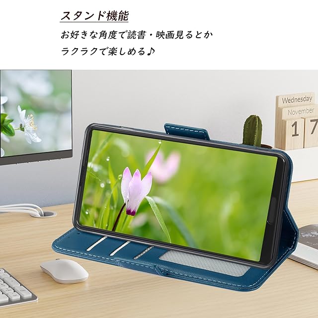 【使う便利性と優れた収納性】横置きスタンド機能付いて、ケースの背面から折り曲げて、横置きのスタントとして活用し、バランスよくスマホを支えて、読書や動画勿論、視聴ビデオ通話等でも効率がアップします。ケースの裏側にカードポケット3つ, 中に一つは透明で写真も入られ、側面には現金も少し収納することができます。 名刺や定期券の収納に優れていて、ちょっととしたお出かけてもこれで十分です;