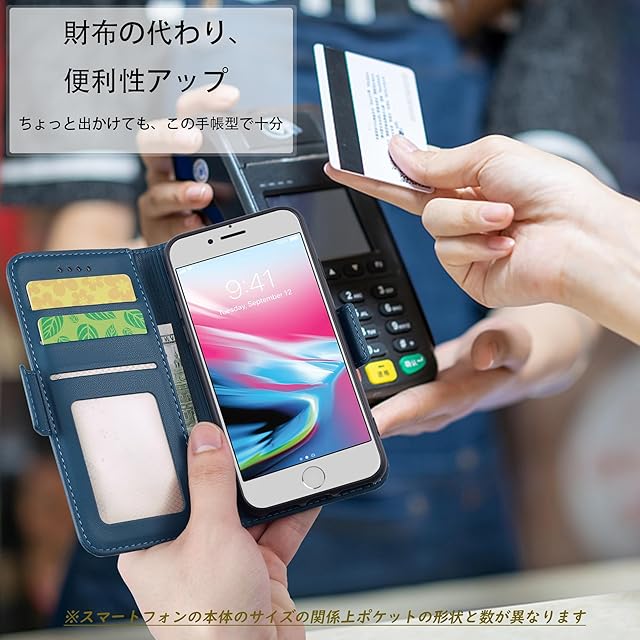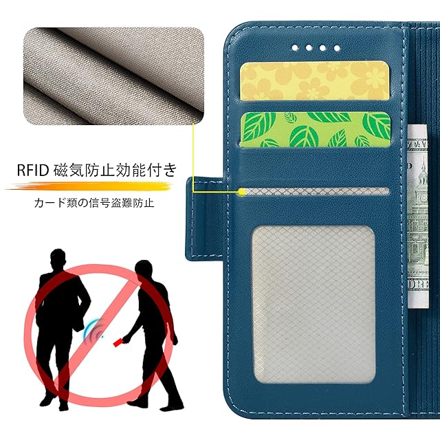 【RFID磁気防止 高品質レザー製】カードポケットにRFID設計加入し、カード類などの信号盗難防止でご財布をきちんとお守れ、使う時は十分安心できる。ケース 手帳型外部のカバーは肌感のような素材を採用しており、普通のレザーより、耐熱性と柔軟性を一層アップされ、素材の表面に手触りは非常に良いフィット感を与えられ、夏でも手汗で変な匂いが出てきてません。【使う便利性と優れた収納性】横置きスタンド機能付いて、ケースの背面から折り曲げて、横置きのスタントとして活用し、バランスよくスマホを支えて、読書や動画勿論、視聴ビデオ通話等でも効率がアップします。ケースの裏側にカードポケット3つ, 中に一つは透明で写真も入られ、側面には現金も少し収納することができます。 名刺や定期券の収納に優れていて、ちょっととしたお出かけてもこれで十分です;【サイドマグネット 全面保護】サイドマグネットの手帳型式で、カバーを閉める時、留め具生地の内側にマグネットが入れるので、片手で簡易に開閉することはできます。そして磁気カード収納する場合、携帯ペンを使う時、磁気を消せるとかの心配も要らないです。外側は高品質のPU製で、落下時の衝撃を効果的に吸収してスマホへの直接的な外力を防げるようになっています。内側は柔軟性あるTPUケースで、二重の保護として機能します。破損することはありません、衝撃から本体を各方向で360°保護します。