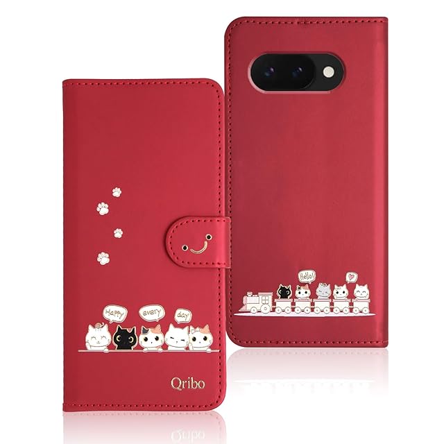 商品名:Qribo Google Pixel 9a ケース 手帳型 ピクセル9a 手帳ケース Pixel9a カバー シンプルなのに可愛いデザイン エンボス加工猫柄 うれしい気持ち 6.3インチ対応 グーグルピクセル9aケース ピクセル9aカバー グーグル Pixel9a スマホケース ピクセル9a ケース 手帳型 薄型 防水 の耐久性 滑り防止 美しい 贈り物 友達 - レッド