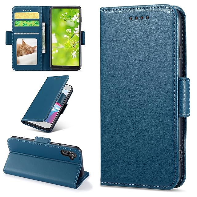 商品名:Galaxy A55 5G ケース手帳型 SC-53E SCG27 ケース サムスン ギャラクシーA55 5G カバー SCG27 手帳型ケース galaxy SC53E ケース手帳 スマホケース 携帯ケース galaxy a55 case 肌触り良いレザー カード収納 RFID カード類信号盗難防止 サイドマグネット スタンド機能 耐衝撃 全面保護 ストラップホール付き ダンチンブルー