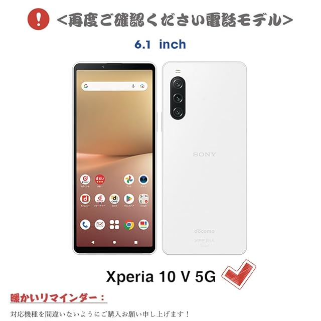 【対応機種】Xperia 10 V (SO-52D SOG11) (6.1inch対応)対応機種と画面サイズをよくご確認のうえ、ご購入いただけますようお願い致します。機種によって各種ボタンの穴が開いており、ジャケットを着脱せずに、充電コネクターの接続、タッチパネル操作が可能です。専用カメラ穴が開いており、本製品を装着したまま、カメラでの撮影が可能です。