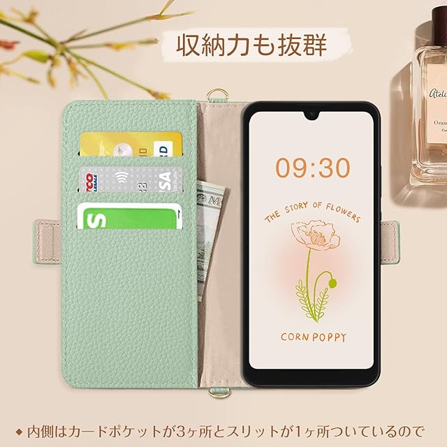 商品名:CASSYOOK aquos wish3 ケース 手帳型 ショルダー アクオスwish3ケース 手帳型 耐衝撃 sh-53d ケース 手帳型 360度保護 sh53d スマホケース ド収納 横置きスタンド機能 高級PUレザー おしゃれ 上質な手触り 擦り傷防止 ケース(グリーン)
