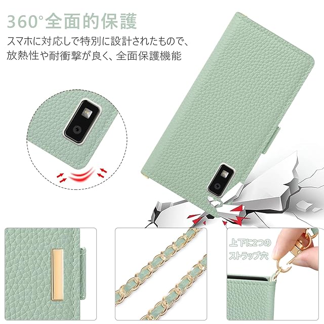 【人気の理由】❶付属クロスボディチェーン。全長120 cm (金具含む)。軽量&快適:他の鉄チェーンよりもはるかに軽い、柔らかい革はあなたの肩に快適です。❷肩掛けケースになれ。女性ぽっいおしゃれなデザイン、質感、縫製も高級感漂う仕様でおしゃれで,スタイリッシュな外観で、金具の装飾が美しさと上品さを漂わせてます。重い荷物を持っている時、子供を連れて外出する時もスマホを紛失すること心配なく両手が解放されます。(ケースだけが必要な場合、チェーンが取り外し可能です)❸サイドマグネット式なので、磁石はケースの側面にあり、カード面に直接接しないので、磁気カード類が壊れる心配がありません。