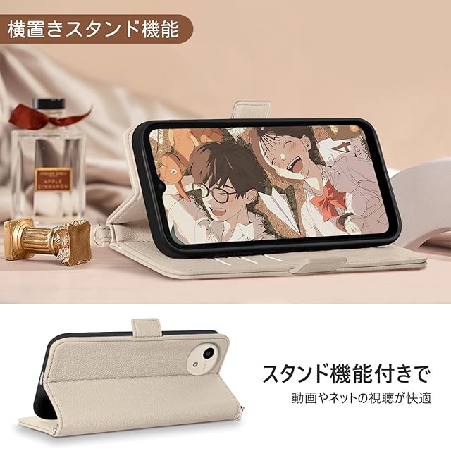【カード収納&スタンド機能】①ブック型ケースとして、内側には三つのカード入れとフリーポケットがつき、ショップでのポイントカード、交通機関でのスムーズな移動をサポートでき、 SUICA / PASMO / ポイントカード / メモ 等収納でき、ちょっととしたお出かけてもこれで十分です。②機能性 横置きスタンド機能が付いて、好きな角度で動画鑑賞や読書などを楽しめます。