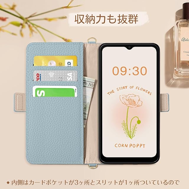 商品名:CASSYOOK aquos wish4 ケース 手帳型 アクオスwish4ケース 手帳型 ショルダー カバー カードポケット付き sh-52e ケース 手帳型 全面保護 aquos wish4 sh-52e ケース 肩掛け カード収納 横置きスタンド機能 高級PUレザー おしゃれ 上質な手触り 擦り傷防止 ケース(ブルー)