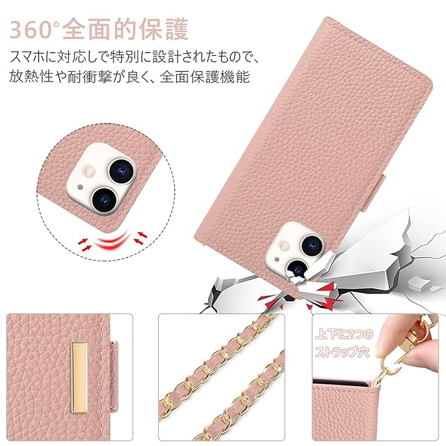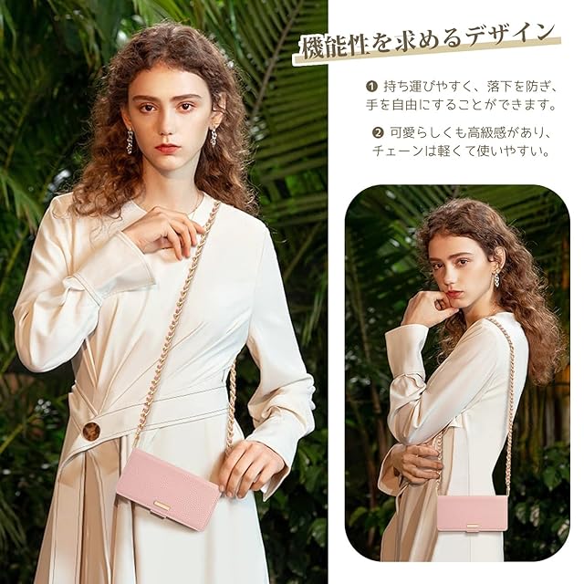 【人気の理由】❶付属クロスボディチェーン。全長120 cm (金具含む)。軽量&快適:他の鉄チェーンよりもはるかに軽い、柔らかい革はあなたの肩に快適です。❷肩掛けケースになれ。女性ぽっいおしゃれなデザイン、質感、縫製も高級感漂う仕様でおしゃれで,スタイリッシュな外観で、金具の装飾が美しさと上品さを漂わせてます。重い荷物を持っている時、子供を連れて外出する時もスマホを紛失すること心配なく両手が解放されます。(ケースだけが必要な場合、チェーンが取り外し可能です)❸サイドマグネット式なので、磁石はケースの側面にあり、カード面に直接接しないので、磁気カード類が壊れる心配がありません。