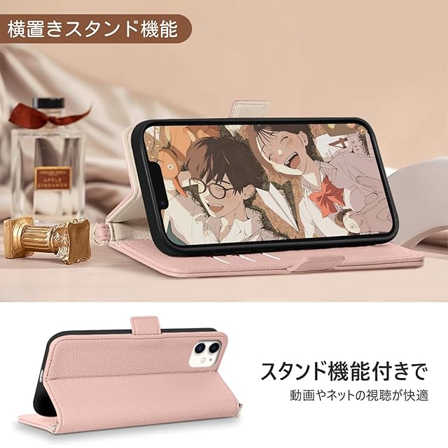 【カード収納&スタンド機能】①ブック型ケースとして、内側には三つのカード入れとフリーポケットがつき、ショップでのポイントカード、交通機関でのスムーズな移動をサポートでき、 SUICA / PASMO / ポイントカード / メモ 等収納でき、ちょっととしたお出かけてもこれで十分です。②機能性 横置きスタンド機能が付いて、好きな角度で動画鑑賞や読書などを楽しめます。