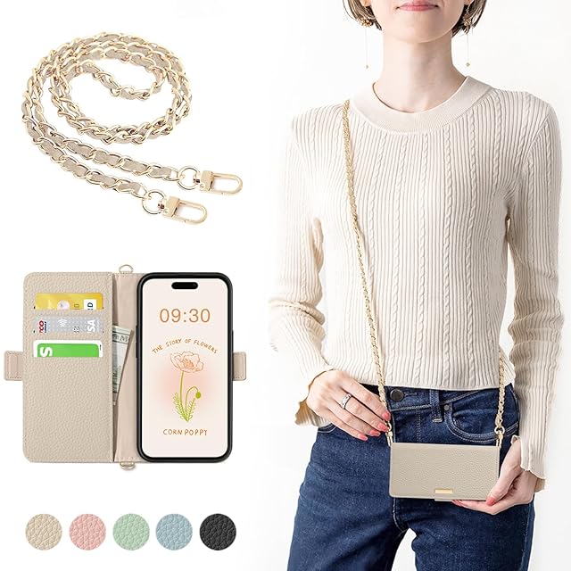 【人気の理由】❶付属クロスボディチェーン。全長120 cm (金具含む)。軽量&快適:他の鉄チェーンよりもはるかに軽い、柔らかい革はあなたの肩に快適です。❷肩掛けケースになれ。女性ぽっいおしゃれなデザイン、質感、縫製も高級感漂う仕様でおしゃれで,スタイリッシュな外観で、金具の装飾が美しさと上品さを漂わせてます。重い荷物を持っている時、子供を連れて外出する時もスマホを紛失すること心配なく両手が解放されます。(ケースだけが必要な場合、チェーンが取り外し可能です)❸サイドマグネット式なので、磁石はケースの側面にあり、カード面に直接接しないので、磁気カード類が壊れる心配がありません。