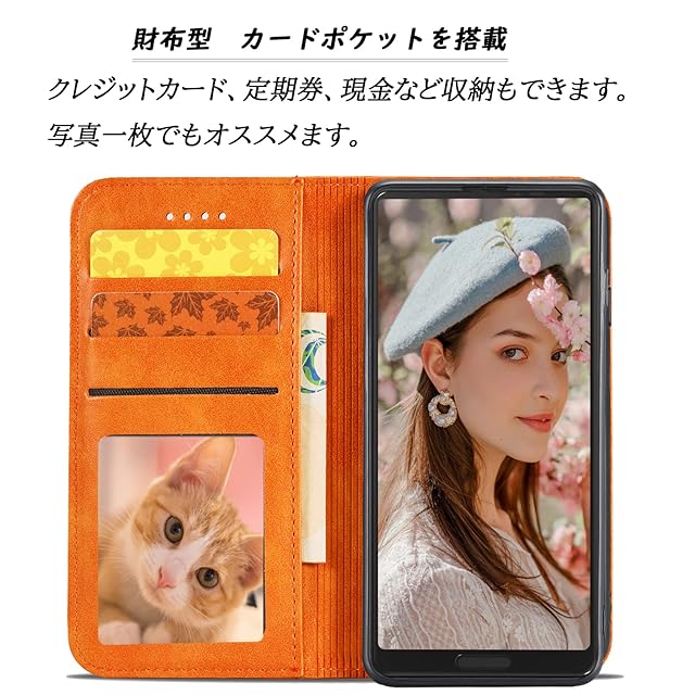 人気の秘密①【素材改良】本商品の外部カバーは牛革繊維を人工合成という生産プロセスで仕上げられた合革で、普通の合革より、性能上の 耐熱性、耐摩擦が一層アップされた。表面生地が硬すぎず、やわすぎず、ちょっと良い手触りです。手汗が出てきても滑りにくく、ケースにも変な匂いがございません。インなケースは弾力性のあるソフト素材を採用しており、四角までしっかり保護でき、実用性高い手帳型です。人気の秘密②【使う便利性と優れた収納性】横置きスタンド機能た付いて、お好きな角度で動画鑑賞や読書などを楽しめます。ケースの裏側にカードポケット3つ, お札入れポケット一つ、名刺や定期券の収納に優れていて、ちょっととしたお出かけてもこれで十分です;人気の秘密③【ストラップホール付き】二つの小さなストラップホールの位置が黒い足とケースの右下にある。お気に入りのストラップを付けることができます。※ストラップは付属しておりません。