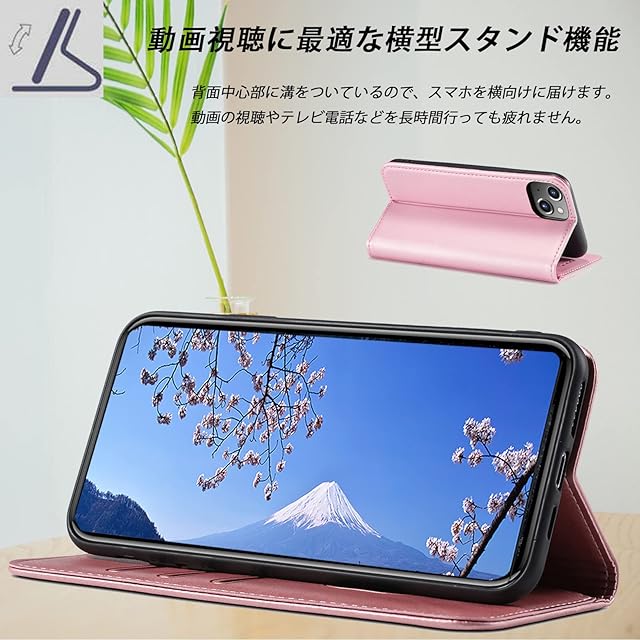 商品名:iPhone14 ケース 手帳型 iPhone 14 手帳 カバー iPhone14 手帳型ケース アイフォン14 ケース 携帯ケース iPhone14 case あいふぉん14手帳型ケース マホケース 携帯カバー PUレザー ストラップホール付き カード収納 内蔵マグネット式 スタンド機能 薄型 防水 ノート型 耐衝撃 男女兼用 落ち着いた色 (iPhone 14 6.1 inch対応) ゴールドピンク