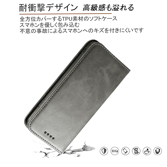 人気の秘密①【素材改良】本商品の外部カバーは牛革繊維を人工合成という生産プロセスで仕上げられた合革で、普通の合革より、性能上の 耐熱性、耐摩擦が一層アップされた。表面生地が硬すぎず、やわすぎず、ちょっと良い手触りです。手汗が出てきても滑りにくく、ケースにも変な匂いがございません。インなケースは弾力性のあるソフト素材を採用しており、四角までしっかり保護でき、実用性高い手帳型です。人気の秘密②【使う便利性と優れた収納性】横置きスタンド機能た付いて、お好きな角度で動画鑑賞や読書などを楽しめます。ケースの裏側にカードポケット3つ, お札入れポケット一つ、名刺や定期券の収納に優れていて、ちょっととしたお出かけてもこれで十分です;人気の秘密③【ストラップホール付き】二つの小さなストラップホールの位置が黒い足とケースの右下にある。お気に入りのストラップを付けることができます。※ストラップは付属しておりません。
