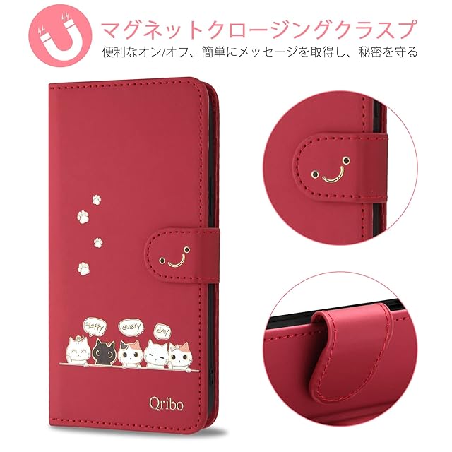 商品名:Qribo Google Pixel 4a ケース 手帳型 ピクセル4a 4G ケース 手帳型 Pixel4a カバー シンプルなのに可愛いデザイン エンボス加工猫柄 うれしい気持ち 5.81インチ対応 Pixel 4a 4G 用手帳カバー Google Pixel 4a 4G スマホケース グーグルピクセル4a ケース 薄型 防水 の耐久性 滑り防止 美しい 贈り物 友達 - 赤