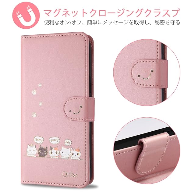 商品名:Qribo Google Pixel 5a ケース 手帳型 ピクセル5a ケース 手帳型 Pixel 5a 5G ケース シンプルなのに可愛いデザイン エンボス加工猫柄 うれしい気持ち 6.34インチ対応 グーグルピクセル5aケース Pixel5a カバー Google Pixel 5a 5G スマホケース 薄型 防水 の耐久性 滑り防止 美しい 贈り物 友達 - ピンク