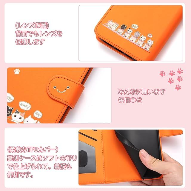 商品名:Qribo Oppo Reno10 Pro 5G ケース 手帳型 Reno 10 Pro ケース シンプルなのに可愛いデザイン エンボス加工猫柄 うれしい気持ち 6.7インチ対応 Oppo reno10 プロ 手帳型ケース ネノ10pro ケース Reno10 Pro 5G スマホケース オッポ リノ10pro カバー 薄型 防水 の耐久性 滑り防止 美しい 贈り物 友達 - オレンジ