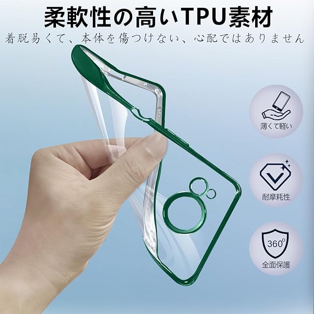 商品名:【FULEEYUHN】AQUOS R8 ケース クリア 軽量 薄型 黄変防止 アクオス R8 カバー 透明 SH-52D SH-R80 対応 スマホケース 上質TPU素材 柔らかい手触[耐衝撃 レンズ保護 傷防止 落下防止 携帯便利]ストラップホール付き(ダークグリーン)