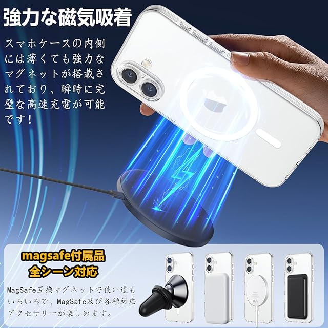 iPhone 16 用 ケース クリア 耐衝撃 ワイヤレス充電 アイフォン16 カバー バンパーカバー 全透明 TPU 人気 マグネット ケース(クリア)