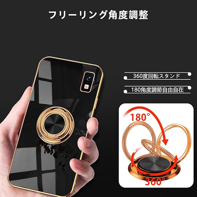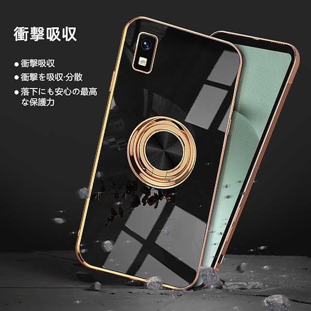 商品名:LuFiYa AQUOS wish3 | SH-53D 用 ケース リング付き カバー TPU素材 スタンド機能 アクオス wish3 スマホケース 軽量 耐衝撃 薄い 擦り傷防止 落下防止 車載ホルダー 360°回転 ケース AQUOS wish3 対応 (ブラック)
