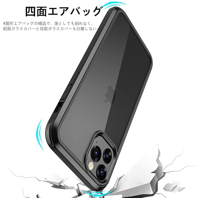 【360度全面保護】前後両面強化ガラスが付いていますので、360°全面保護できます。表面ガラスフィルムも購入する必要はありません。耐衝撃が高く柔軟性に優れたソフトなシリコン素材を使用され、ケースの四隅が滑り止めの凸型リブ設計を施し、嵌め込み式クリア前カバーと透明バックカバーの組み合わせにより、360度の全方位からスマホを守ります。また、ケースの四隅にエアバッグのデザインで、落下時の衝撃を吸収します。背面レンズ部分は0.5MM高く設計、レンズ面が地面などに接触せずに傷防止になります。