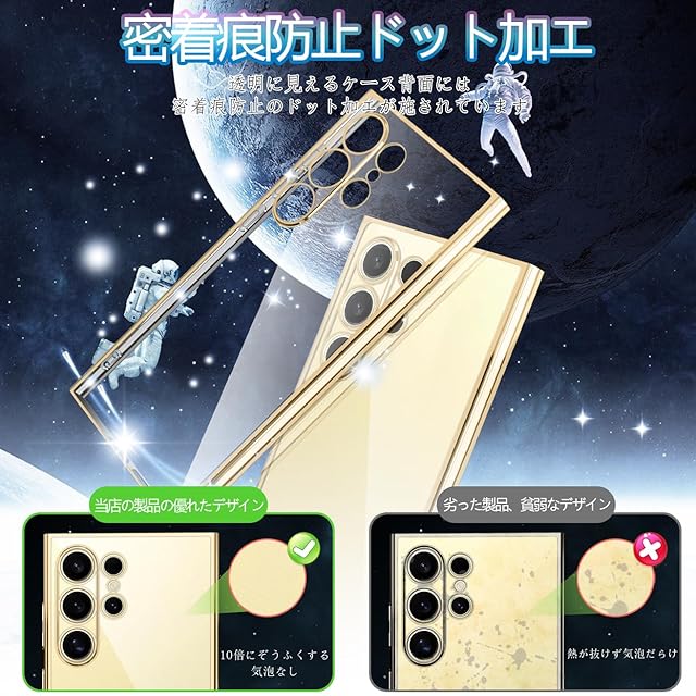 商品名:Galaxy S24 Ultra ケース クリア TPU 薄型 軽量 ギャラクシーS24Ultra 耐衝撃 米軍MIL規格取得 滑り止め 黄変防止 防塵 人気 携帯カバー ワイヤレス充電対応 (ゴールド)