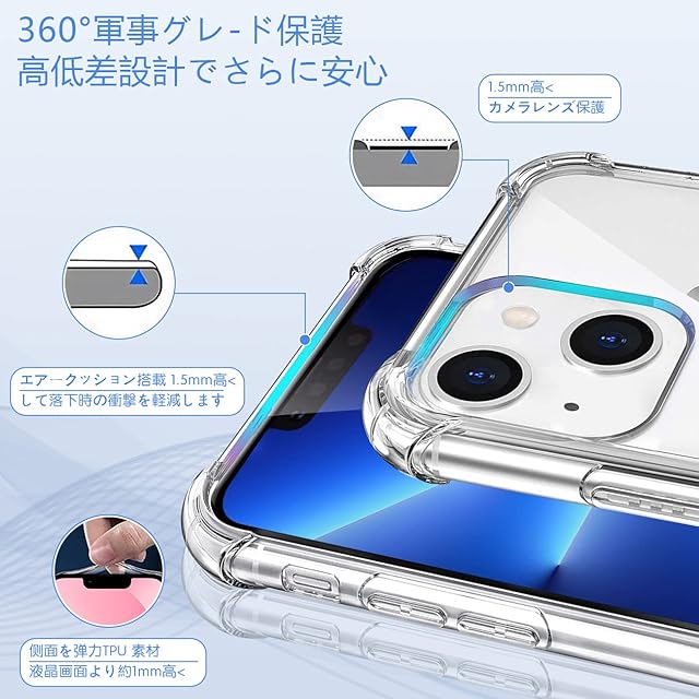 【画面・カメラ保護&抜群の耐衝撃性】対応 iPhone 14 Plus のカメラレンズより1.5ミリ高い立ち上がって、有効的に擦り傷を防ぎます。携帯電話の曲線に従って高低差設計です。液晶画面より約1mm高く設計、携帯電話を全面的に保護できます。液晶画面ガラスフィルムを付着した場合にもフィルムをキズと衝撃から保護できます。誤差のない精密設計でボタンが押しやすいながら、デバイスにフィットします,薄型、軽量型を考慮して最も便利な設計になっております,長く持っても手が疲れる感じもありません。