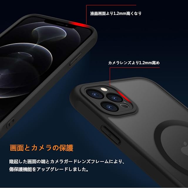 iphone 12 pro max ケース スマホカバー マット半透明 マグネット搭載 ワイヤレス充電 耐衝撃 指紋防止 滑り止め 米軍MIL規格・Magsafe対応 アイフォン 12 pro max 用カバー インチ PinLiSheng (ブラック, iphone 12 pro max)