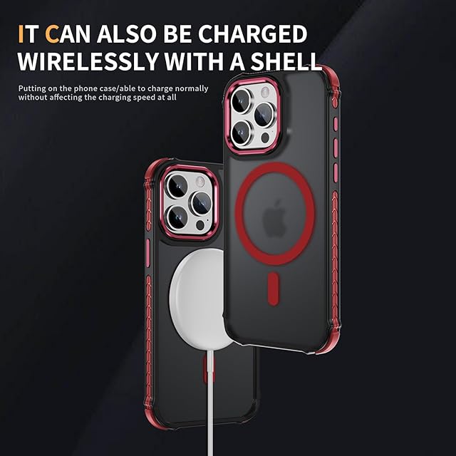商品名:iPhone 15 pro ケース iphone ケース15 pro スマホカバー マット半透明 マグネット搭載 ワイヤレス充電 耐衝撃 指紋防止 滑り止め 米軍MIL規格・Magsafe対応 アイフォン15 pro 用カバー インチ PinLiSheng (レッド, iphone 15 pro)