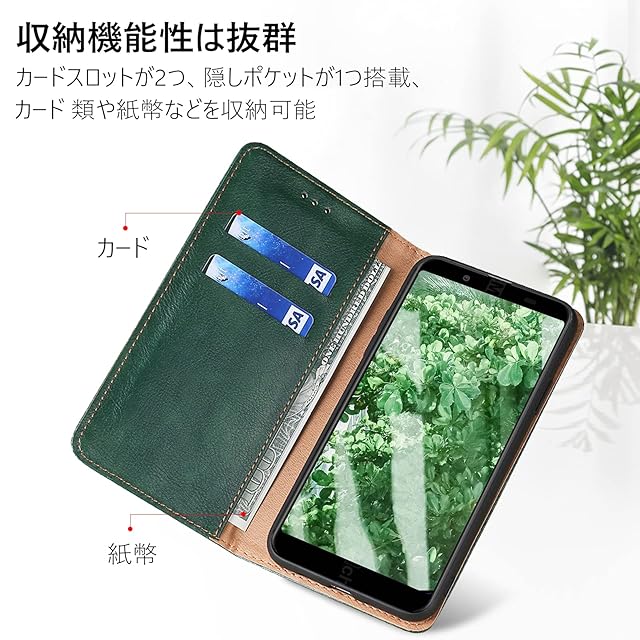 商品名:aquos sense3 ケース aquos sense3 lite ケース 手帳型 android one s7ケース 内蔵マグネット shv45 shv48 sh02m sh-rm12ケース カード収納 横スタンド機能 薄型 耐衝撃 レトログリーン