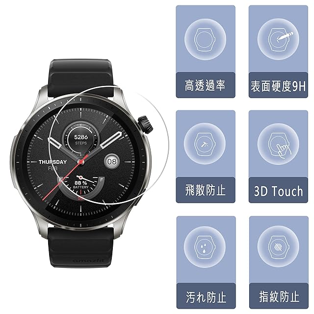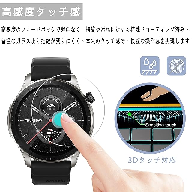 【3枚セット-高 品質】対応 Amazfit GTR 4 ガラスフイルム amazfit gtr4 フイルム 保護フィルム 強化ガラス 画面保護シート 液晶シール カバー 液晶保護 ソフト 【 日本旭硝子素材採用 硬度9H 耐衝撃 飛散防止 超薄 気泡ゼロ 高感度 撥油性 指紋防止 超耐久 】