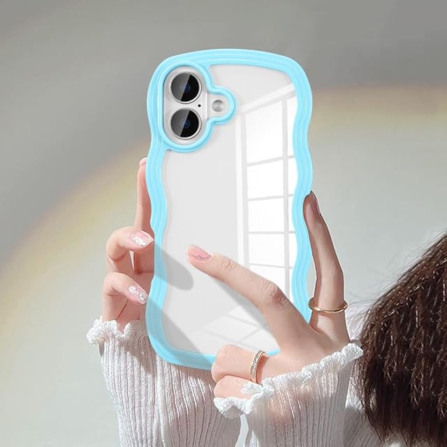 UEEBAI 対応 iPhone 17 用の ケース ソフト TPU カバー 可愛い おしゃれケース 透明 ウェーブ デザイン スマホケース ワイヤレス充電対応 軽量 薄型 耐衝撃 人気 波型 バンパー スマホケース - シエラブルー