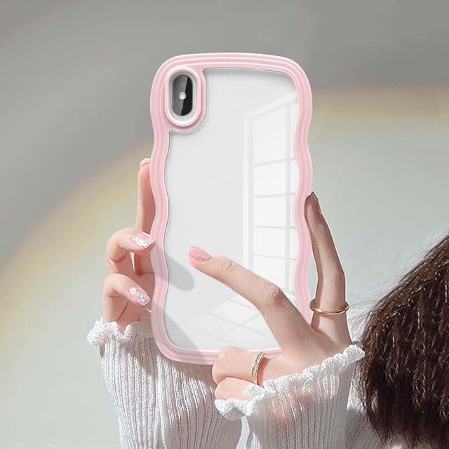 UEEBAI 対応 iPhone X/iPhone XS 用の ケース ソフト TPU カバー 可愛い おしゃれケース 透明 ウェーブ デザイン スマホケース ワイヤレス充電対応 軽量 薄型 耐衝撃 人気 波型 バンパー スマホケース - ピンク