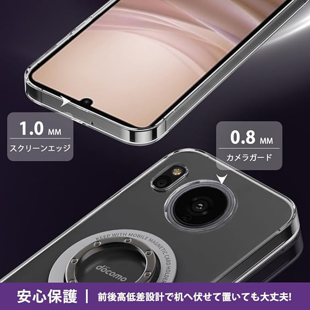 商品名:対応 AQUOS sense7 ケース SH-53C/SHG10 透明 金属リング付き アクオスセンス7 クリア スマホケース タンド機能 ストラップホール付き 擦り傷防止 滑り止め 落下防止