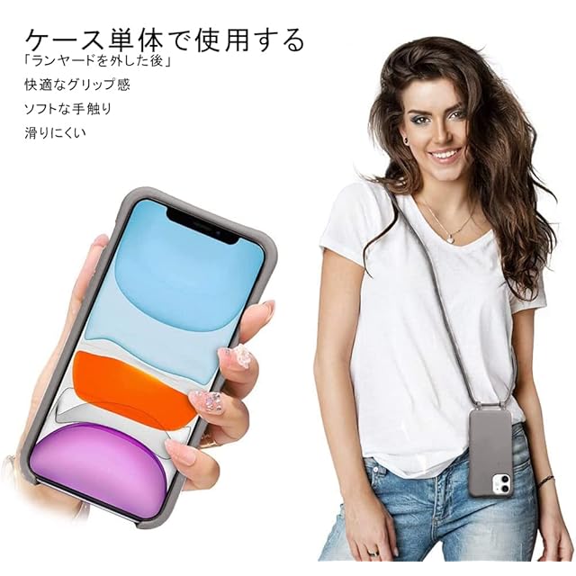 商品名:UnnFiko For iPhone 8 ケース ネックストラップ For iPhone SE 3/2 スマホケース 蛍光色 シリコン アイフォン iPhone 7 ケース シンプル ソフトiPhone SE 第2世代 保護カバー 携帯ストラップ 紐付き 斜めがけ (iPhone 7 / 8 / SE 2/ SE 3,グレー)