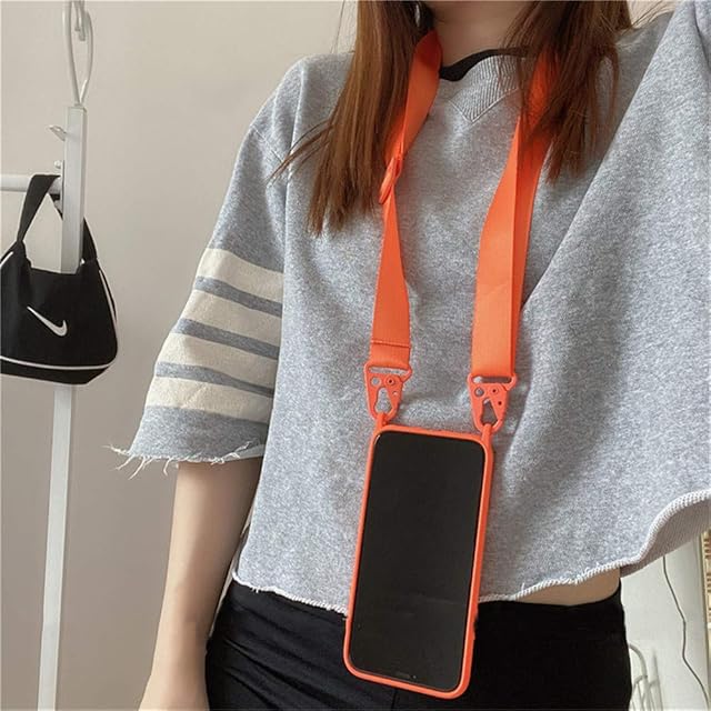 商品名:UnnFiko For iPhone 12 mini ケース ネックストラップ スマホケース 蛍光色 シリコン アイフォン 12 mini ケース シンプル ソフト 保護カバー 携帯ストラップ 紐付き 斜めがけ (iPhone 12 mini, Orange)