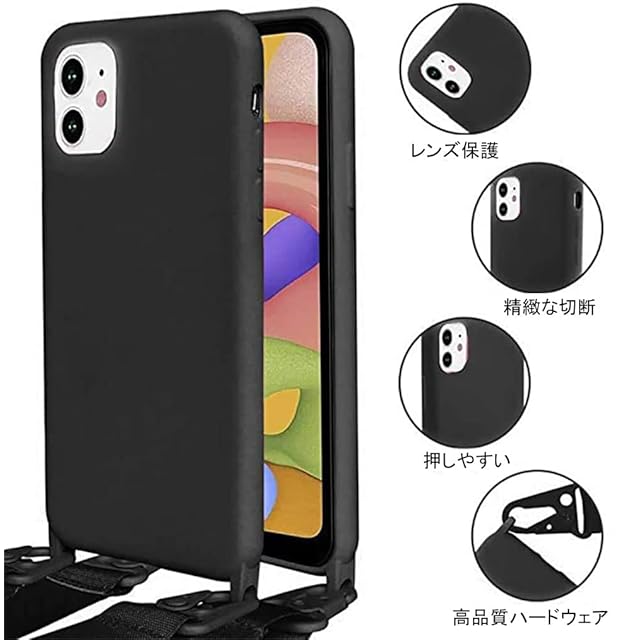 商品名:UnnFiko for iPhone X ケース ネックストラップ スマホケース 蛍光色 シリコン アイフォン XS ケース シンプル ソフト 保護カバー 携帯ストラップ 紐付き 斜めがけ (iPhone X/XS, Black)