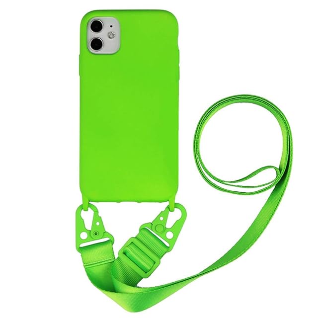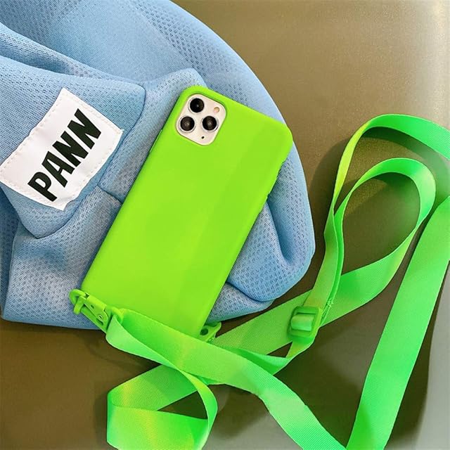 商品名:UnnFiko For iPhone XR ケース ネックストラップ スマホケース 蛍光色 シリコン アイフォン ケース シンプル ソフト 保護カバー 携帯ストラップ 紐付き 斜めがけ (iPhone XR, Green)