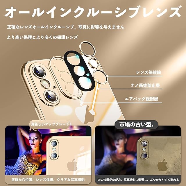 【レンズフィルム付き】一体式保護ケース、全包レンズ、剃り防止、転倒防止、黄色くならない、メッキ工芸精彫細琢