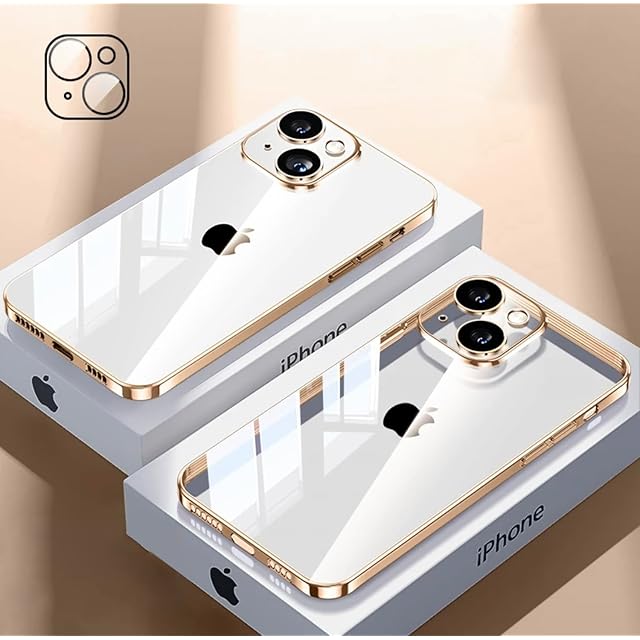 Tecxin iPhone14用スクエアメッキケースiPhone 14ケース用ソフトクリアTPUバックカバー耐衝撃 (iPhone14 ゴールド)