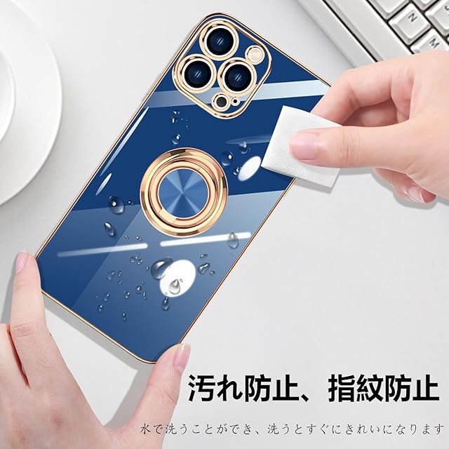 商品名:iPhone16 Pro ケース リング付き アイフォン16Pro リング カバー 耐衝撃 TPU 360°回転 スタンド機能 メッキ加工 車載ホルダー ストラップホール付き 6.3インチ(ブルー)