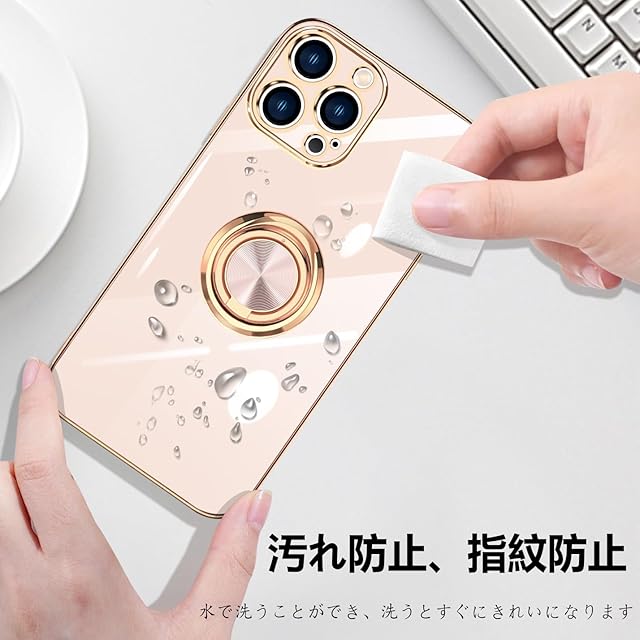 商品名:ONETIAOLONG iPhone16 Pro Max ケース リング付き アイフォン16ProMax リング カバー 耐衝撃 TPU 360°回転 スタンド機能 メッキ加工 車載ホルダー ストラップホール付き 6.9インチ(ピンク)