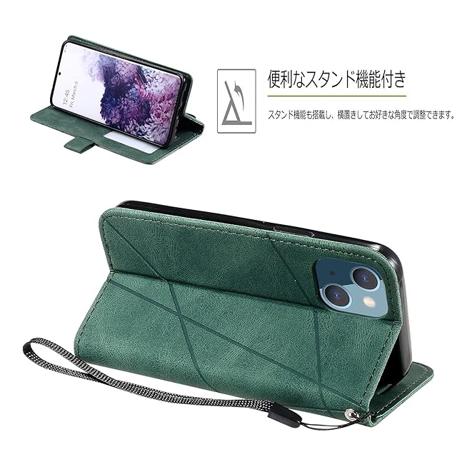 商品名:UnivoColors iPhone 15 手帳型ケース カード収納 スタンド機能 サイドマグネット TPUケース 軽量 ストラップ付き QI充電対応 横置き機能 防指紋 レンズ保護 全面保護 (グリーン)
