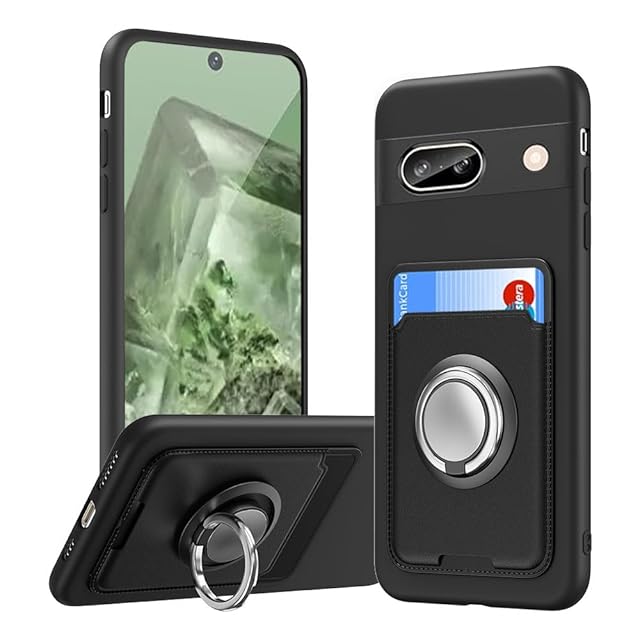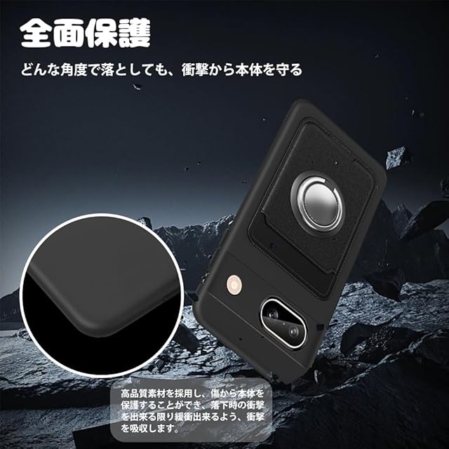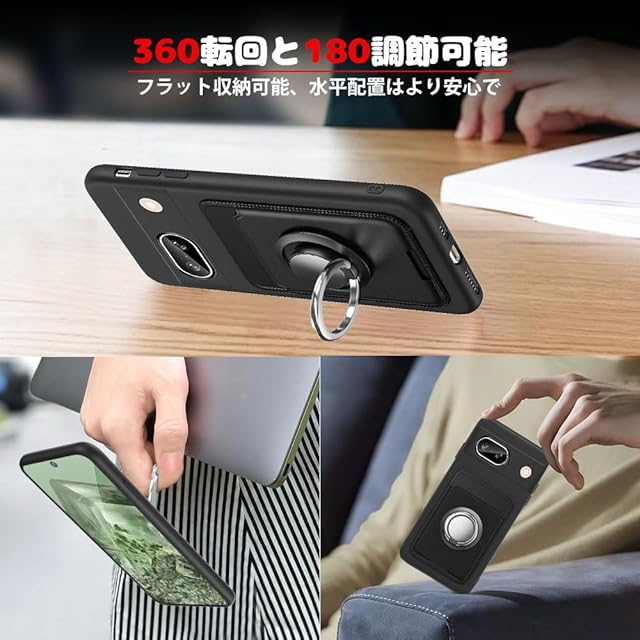 商品名:対応 Google Pixel 8a ケース カード収納 リング付き 保護カバー ピクセル8a ケース リング スタンド付き ストラップホール付き シリコン スタンド機能 マット質感 滑り止め 黑