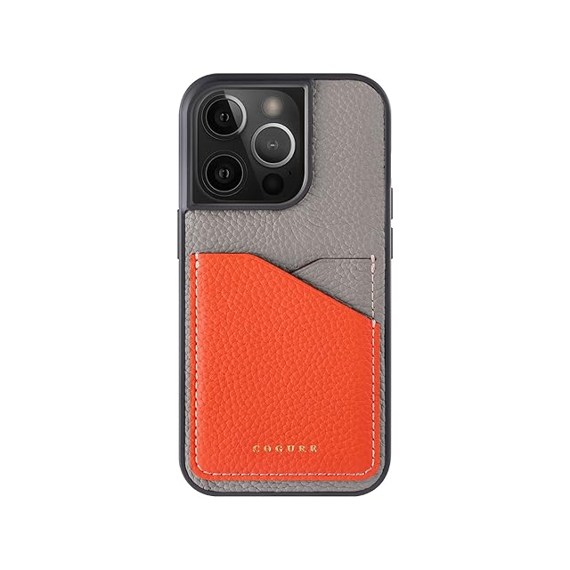 COGURE コグレ iPhone13Pro ケース 本革 シュリンクカーフレザー カード入れ シンプル おしゃれ ギフトボックス付き COPC2 グレージュ+オレンジ