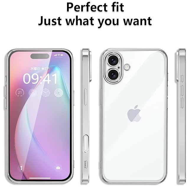 Montue iPhone 16 Plus ケース クリア 耐衝撃 米軍MIL規格 可愛い 韓国 薄型 軽量 スマホケース アイフォン16 plus 用 カバー ワイヤレス充電対応 (シルバー)
